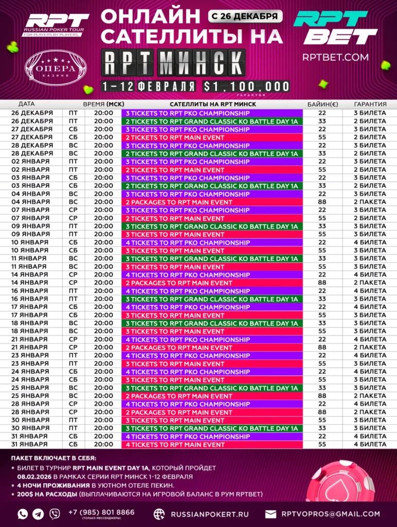 С 26 декабря на RPTBET стартует серия онлайн-сателлитов к февральскому RPT PRIME в Минске.