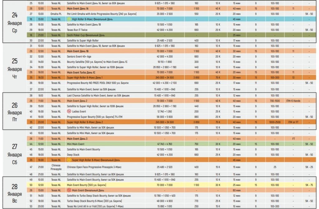 Мейн Ивент с бай-ином 77,000 руб. будет многодневным — Дни 1А и 1В состоятся 24 и 25 января.