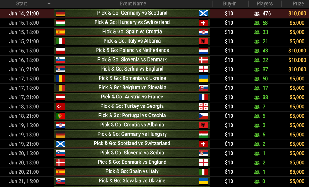ПокерОК запустил турниры Pick&Go за $10 с привязкой к матчам Чемпионата Европы и Кубка Америки по футболу.