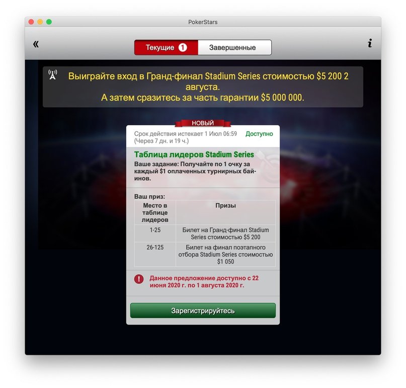 — Попадите в топ-25 на момент завершения данной акции 1 августа и получите билет на Гранд-финал Stadium Series стоимостью $5200.