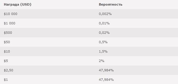 Ниже Вы найдете информацию о вероятности различных призов в турнирах спин-энд-гоу на $1 000 000 от Криштиану Роналду.