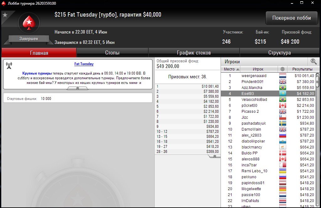 Пятерку завершает “yEsse”. Это новое имя в рейтинге, на PokerStars играет под ником “Eset93”.