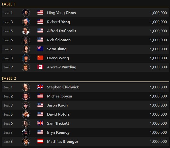 Согласно правилам, несколько первых уровней бизнесмены и профессионалы будут играть отдельно. Затем их рассадят так, чтобы и тех и других было примерно поровну за каждым столом. Во втором дне рассадка будет полностью случайной.