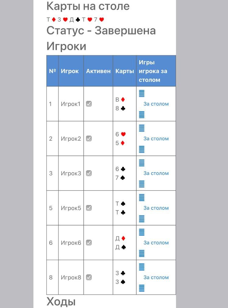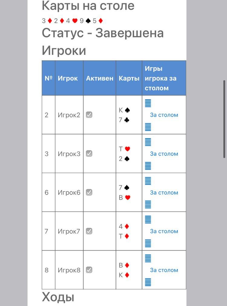 Теперь Т – 4 (буби) даёт ри-Рейз 1.600., колят его только К – В (буби) и Т – 2 (разномастные). К – 7 (разномастные) Пас. Трое в игре.