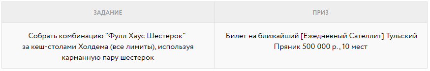 Также мы решили подсластить субботу «Тульским Пряником». Это турнир с гарантией 500 000 рублей. Он правда, прямо как свежий пряник, так и манит своей азартной начинкой. Ключ к входу на турнир – 500 рублей.