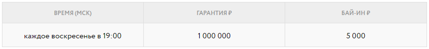 Мы начинаем сезон и хотим порадовать наших игроков щедрым турниром «Кремль» с гарантией 1 000 000 рублей каждое воскресенье. С виду скромный, а на деле – ракета, пушка, петарда.