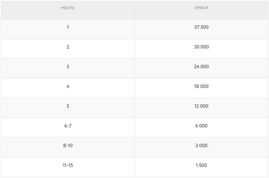 Распределение призов в лигах: