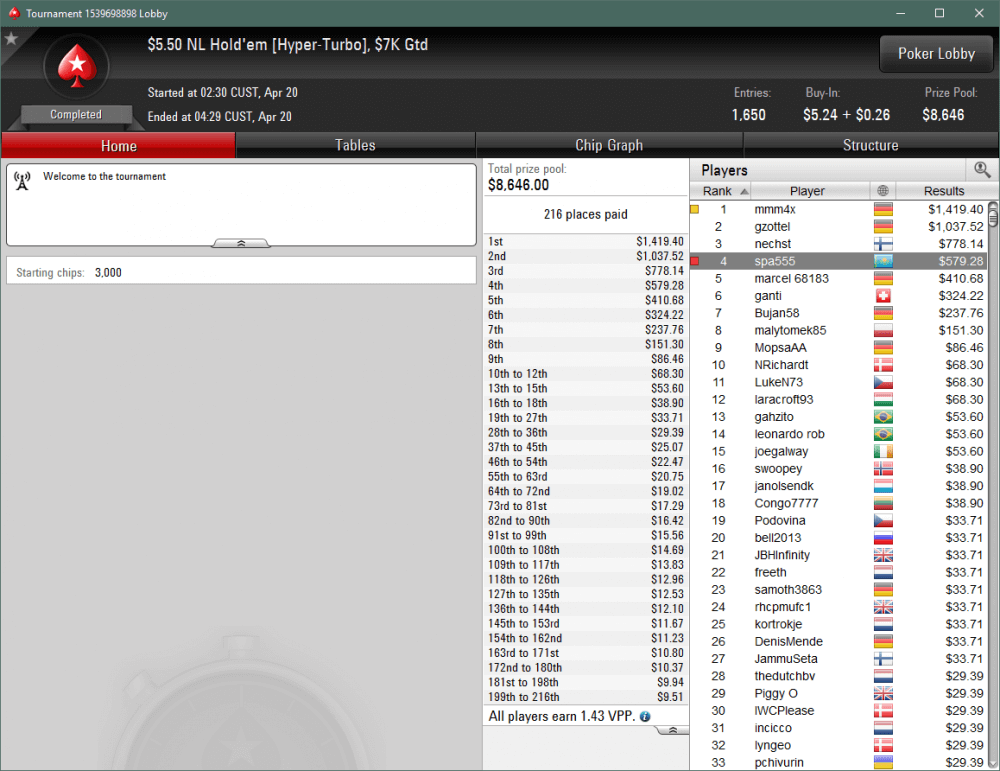 Павел «spa555» в своем дневнике объявил о марафоне по МТТ, в котором поставил цель увеличить до 7 мая имеющийся банкролл в $600 до $3,000. Ниже сообщения и о…