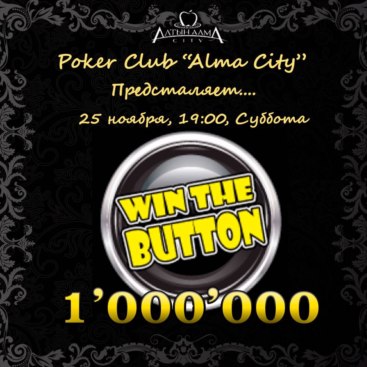 В Покер клуб «Алма Сити» пройдет турнир Win The Button с бай-ином 10,000 и миллионной гарантией.