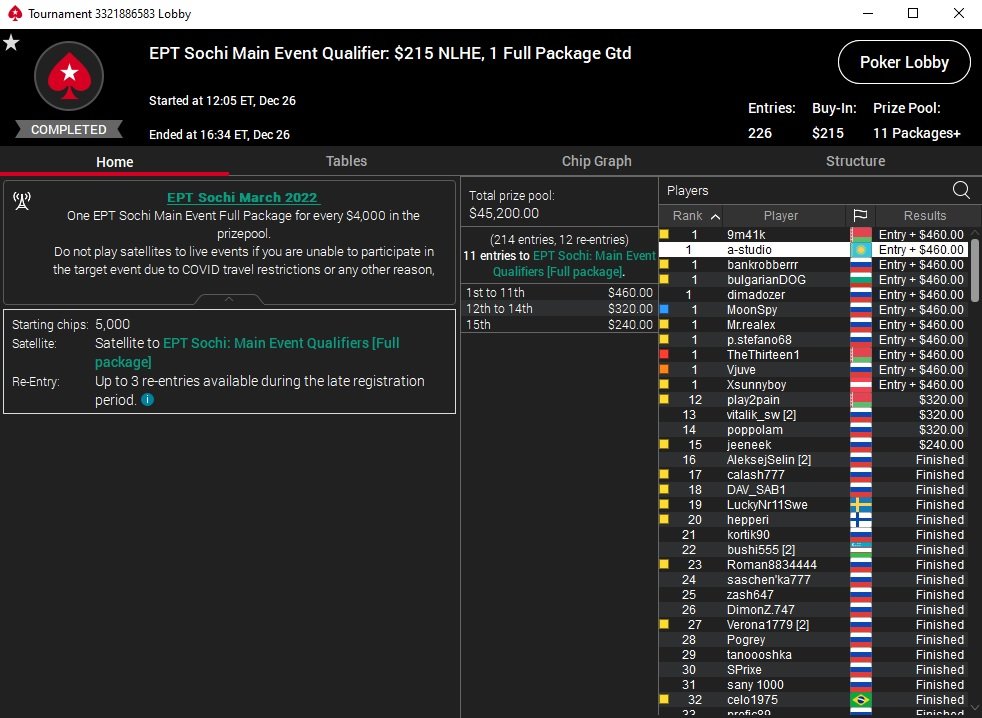 Наш форумчанин ”vk_pokerstar” прошел через сателлиты на Главное событие EPT в Сочи, выиграв полный пакет.