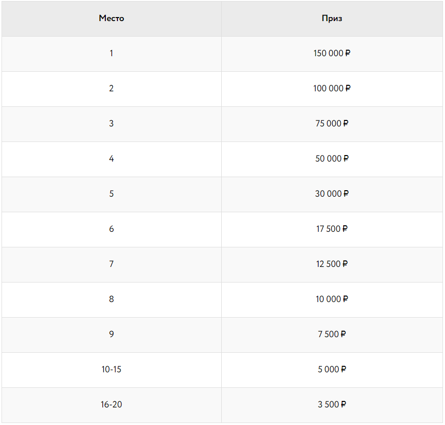 - Призовые победитялм будут начислены в виде фрибетов (бесплатных ставок на спорт).