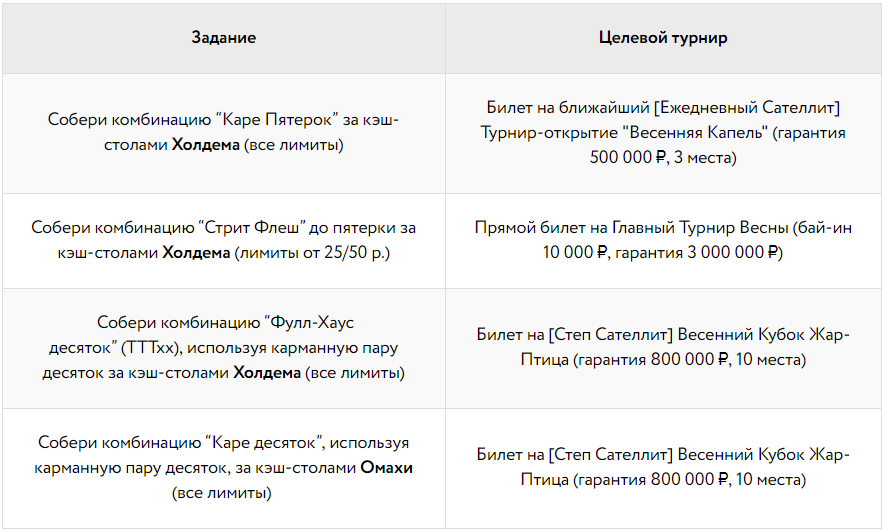 - объединенная таблица лидеров и покерные задания с гарантированным призовым фондом 1 000 000 ₽.