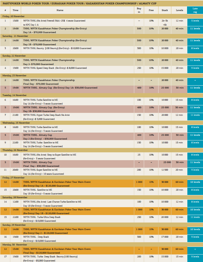 Казино «Bombay» (г.Капшагай) при содействии одноименного покерного клуба приглашает всех на национальный этап Мировой серии покера (WPTN Kazakhstan). Серия пройдет с 20 по 30 ноября 2015 года, а гарантия составит $300,000.