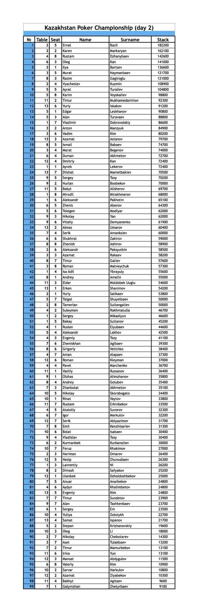 Чипкаунт перед Днем 2 Kazakhstan Poker Championship