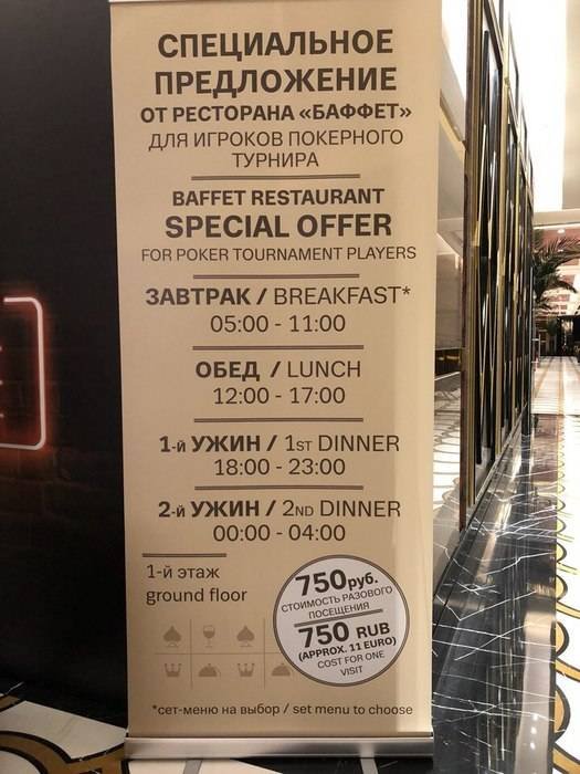 Как всегда организаторы создаются все условия, чтобы игроки чувствовали себя комфортно, включая раздачу бесплатных напитков, кофе, чая и.д. Ресторан «Баффет» в свою очередь приготовил специальное предложение для участников серии: