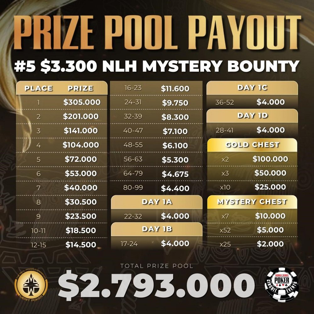 Казахстанский игрок Андрей Голубев уверенно лидирует в турнире $3,300 Mystery Bounty Event, где в игре остаются всего 17 участников из 980. На кону — внушительные $305,000 за первое место, чемпионское кольцо и пакет на WSOP Paradise стоимостью $5,000.