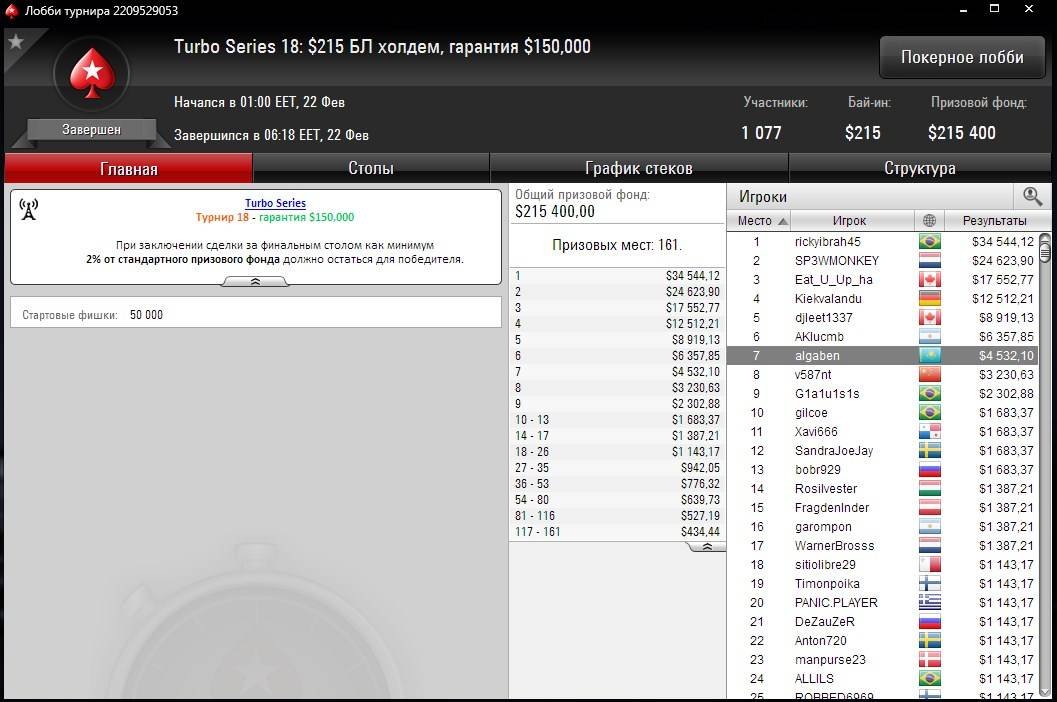 Отметим, что в Turbo Series отличился и форумчанин Абен “quicksilver”, занявший 7 место в ивенте с бай-ином $215.