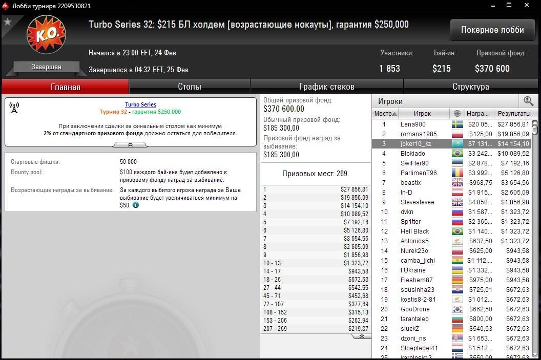 За минувшую неделю нашему форумчанину Жакену “Joker10” дважды удалось попасть за финальные столы Turbo Series, которая проходит на PokerStars.